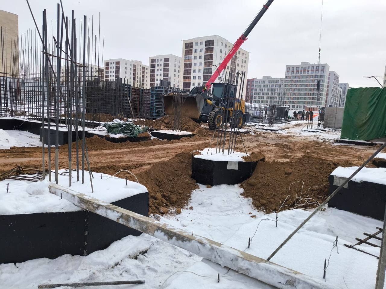 Строительно-монтажные работы на объекте начались 20 декабря 2025 года. Завершены свайные и фундаментные этапы. На площадке выполняются монолитные работы - ведётся устройство вертикальных несущих конструкций здания. Строительство осуществляется в плановом режиме в соответствии с утверждённым графиком. Сейчас специалисты возводят основные железобетонные конструкции и выполняют сопутствующие общестроительные задачи. Завершение строительно-монтажных работ запланировано на конец 2026 года.