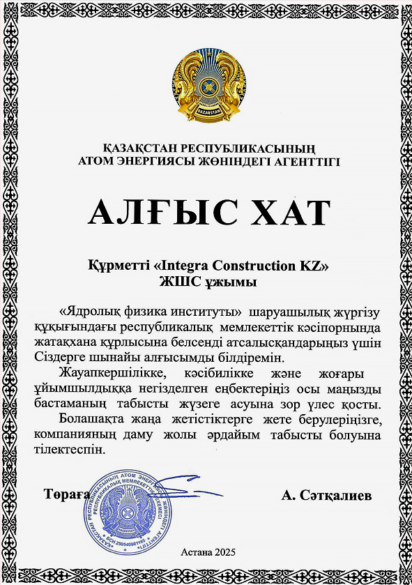 © 2009-2026 ТОО «Integra Construction KZ» Все права защищены. |